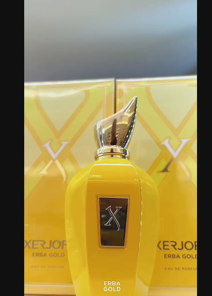 Xerjoff's Erba Gold is a unisex fragrance with a vibrant and refreshing scent that combines citrus, spice, and vanilla. It opens with a bright burst of Calabrian bergamot, Brazilian orange, Sicilian lemon, and ginger. The heart features a blend of melon, pear, green apple, Guatemalan cardamom, cloves, and cinnamon. The base notes include amber, white musk, Madagascar vanilla, and woody notes.